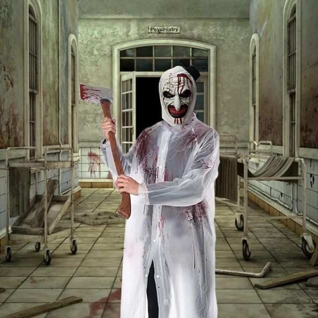 Convierte cada fiesta en una escena digna de Terrifier y siembra el pánico con esta máscara que no dejará indiferente a nadie.